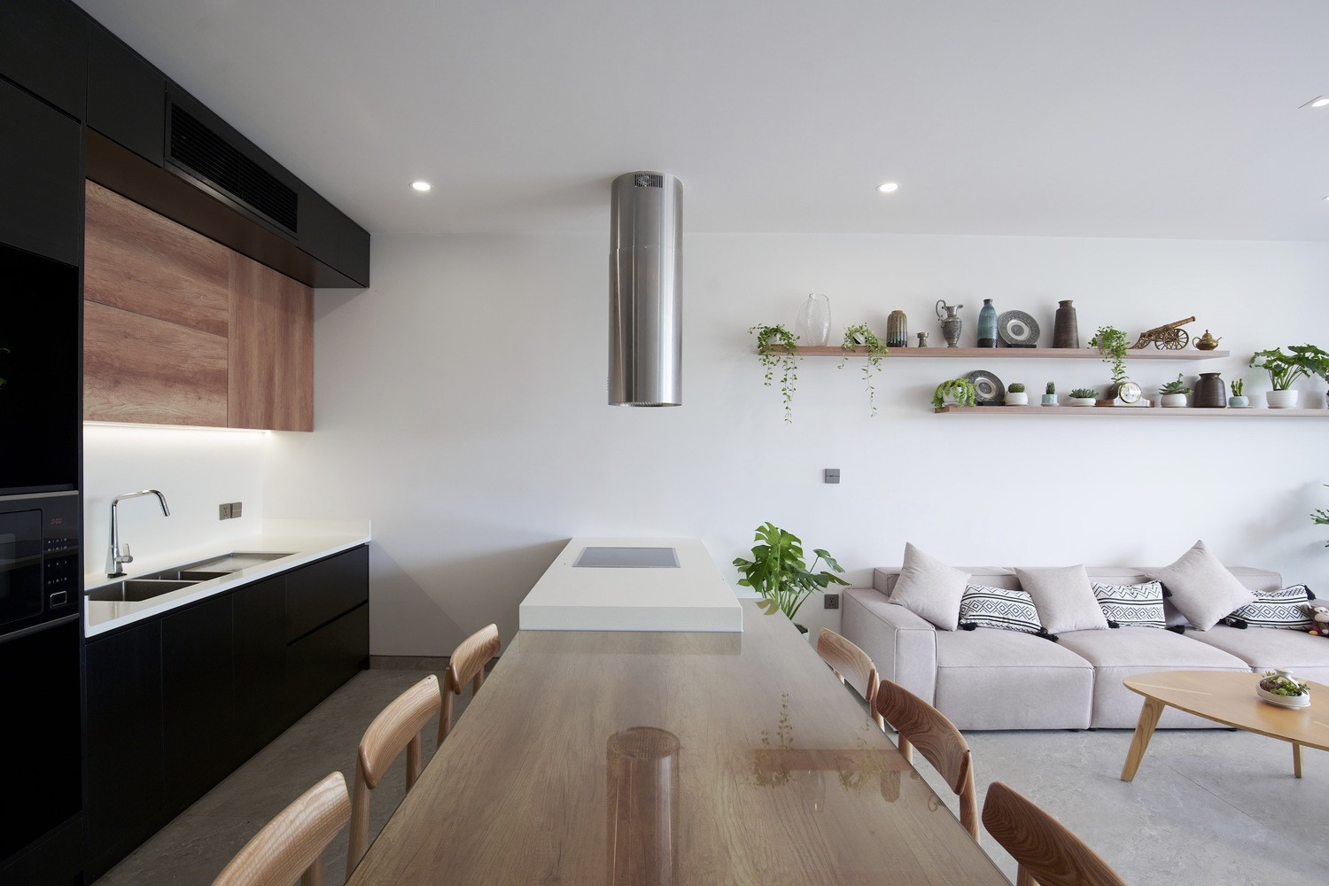 Khu vực bếp và bàn ăn cũng được bố trí cùng tầng 1.