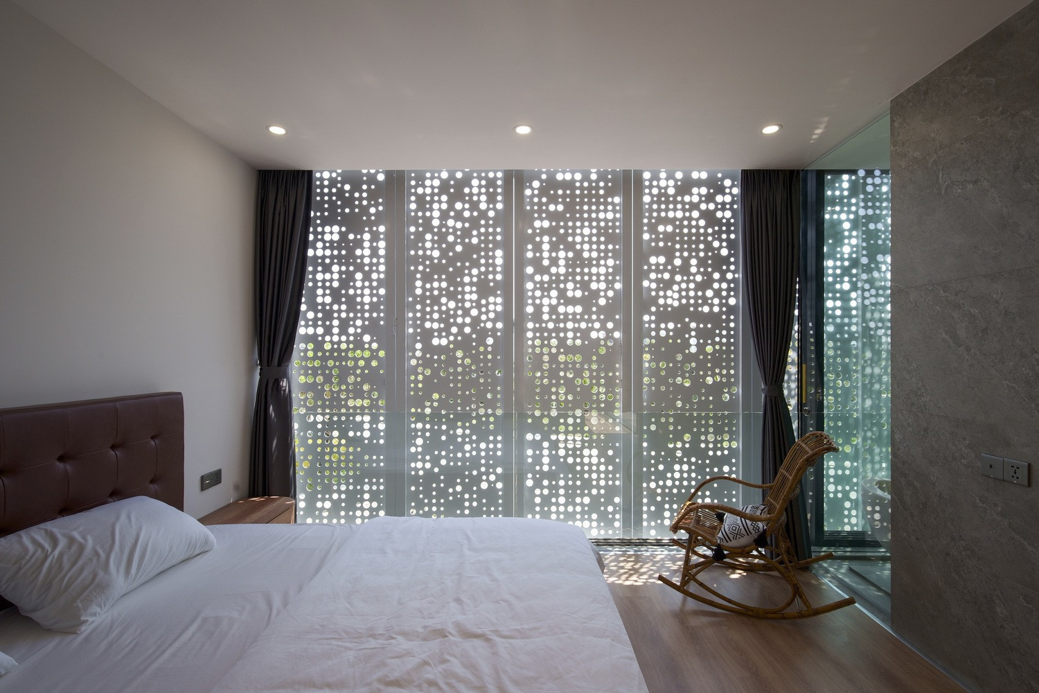 Phòng ngủ luôn có ánh sáng và không khí ngoài trời với hệ thống cửa đặc biệt này, nhưng vẫn đảm bảo riêng tư.