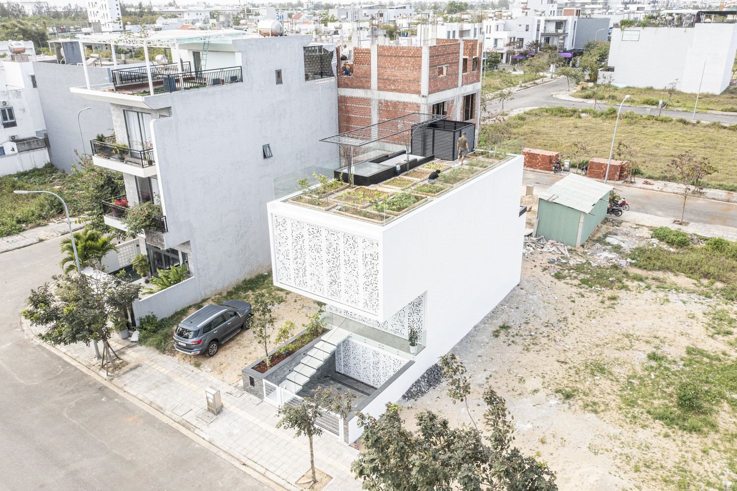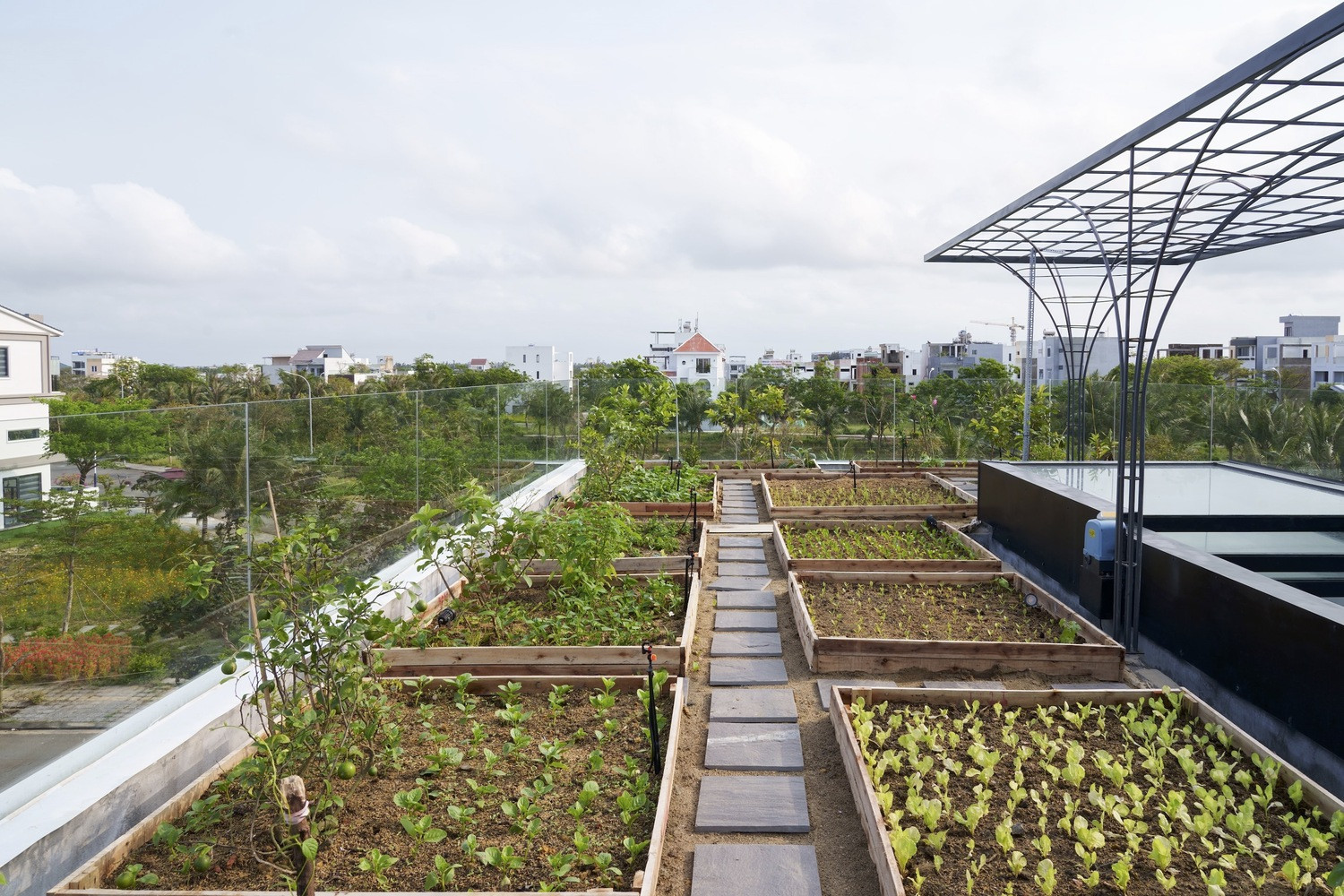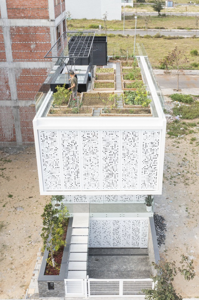 Với sở thích của gia chủ, các kiến trúc sư đã tận dụng toàn bộ diện tích mái để trồng rau hữu cơ.