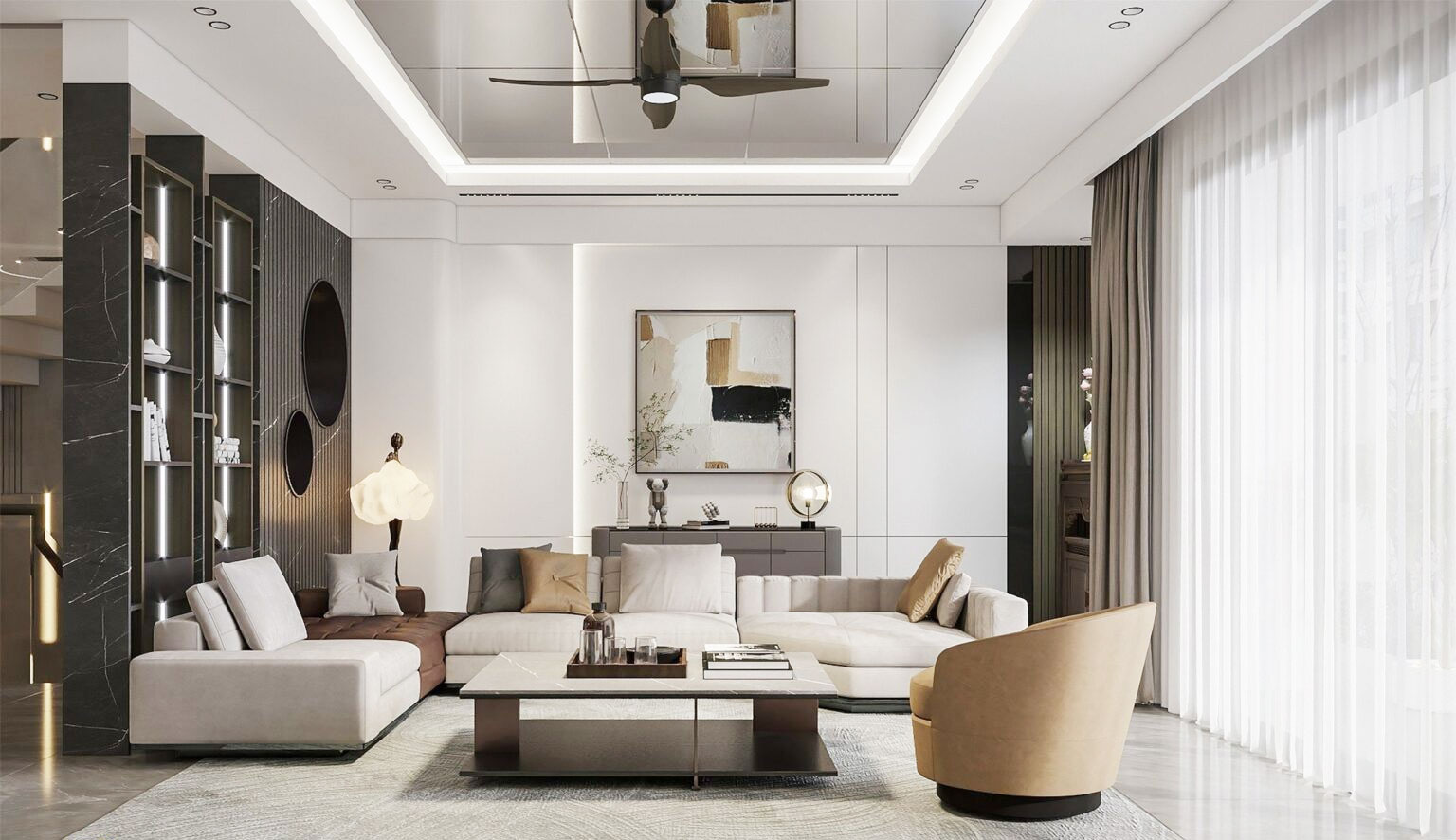 Thiết kế nội thất phong cách hiện đại - một trong những phong cách được lựa chọn hàng đầu cho những gia chủ thích sự đơn giản, hiện đại nhưng vẫn đảm bảo tính thẩm mỹ lẫn công năng sử dụng của nó. Tông màu trung tính thường được gia chủ ưu tiên lựa chọn cho không gian phòng khách hiện đại.
